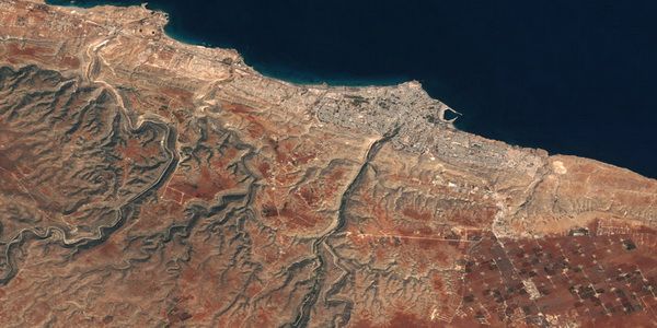 وتظهر الصورة الأولى التي التقطتها الشبكة الأميركية يوم 18 سبتمبر حجم الدمار الذي لحق بالمدينة وحجم الجرف البحري الذي أحدثته السيول وسط درنة في اتجاه البحر، كما تظهر كيف غطت الأوحال نحو 50 في المائة من أحيائها.