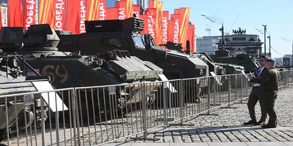 وتعرض موسكو مجموعة من المركبات والآليات المدرعة من صنع 12 دولة غربية تم اغتنامها في أوكرانيا وهي من صنع أمريكي وبريطاني وألماني وأسترالي فضلا عن معدات عسكرية أخرى مصنوعة في تركيا والسويد والنمسا وفنلندا وجنوب أفريقيا وجمهورية التشيك وذكرت القناة الأولى بالتلفزيون الحكومي الروسي أن نجم العرض كان دبابة قتالية أميركية من طراز إم.وان أبرامز، وأضافت أن القوات الروسية استولت عليها في شرق أوكرانيا باستخدام صاروخ موجه وطائرات مسيرة انتحارية , وأضاف البيان "لن تغير أي معدات عسكرية غربية الوضع في ساحة المعركة".